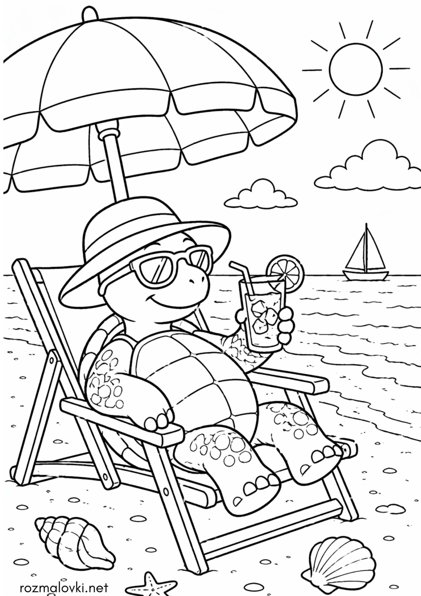 Розмальовка Черепаха на пляжі