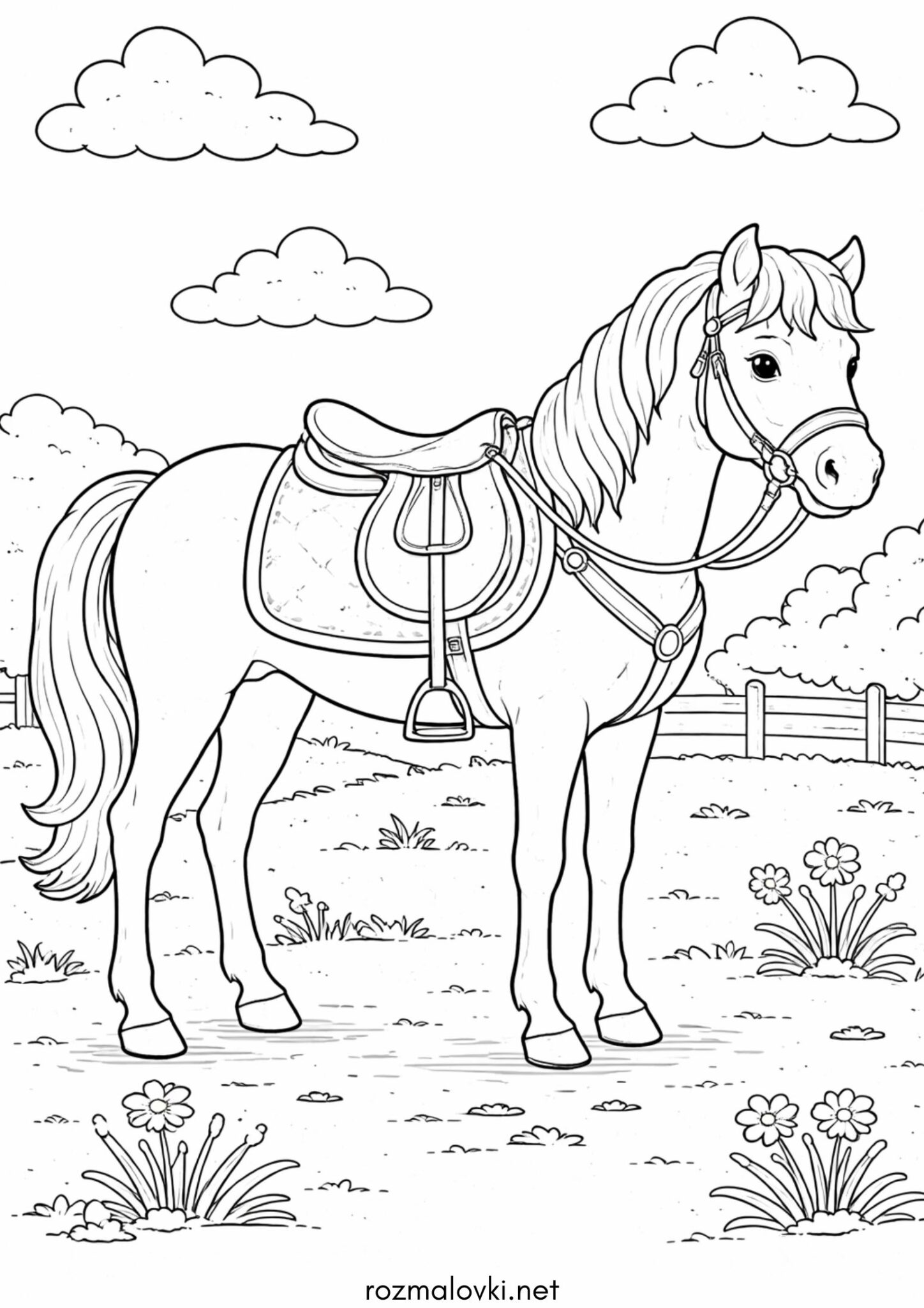 Розмальовка Кінь з сідлом