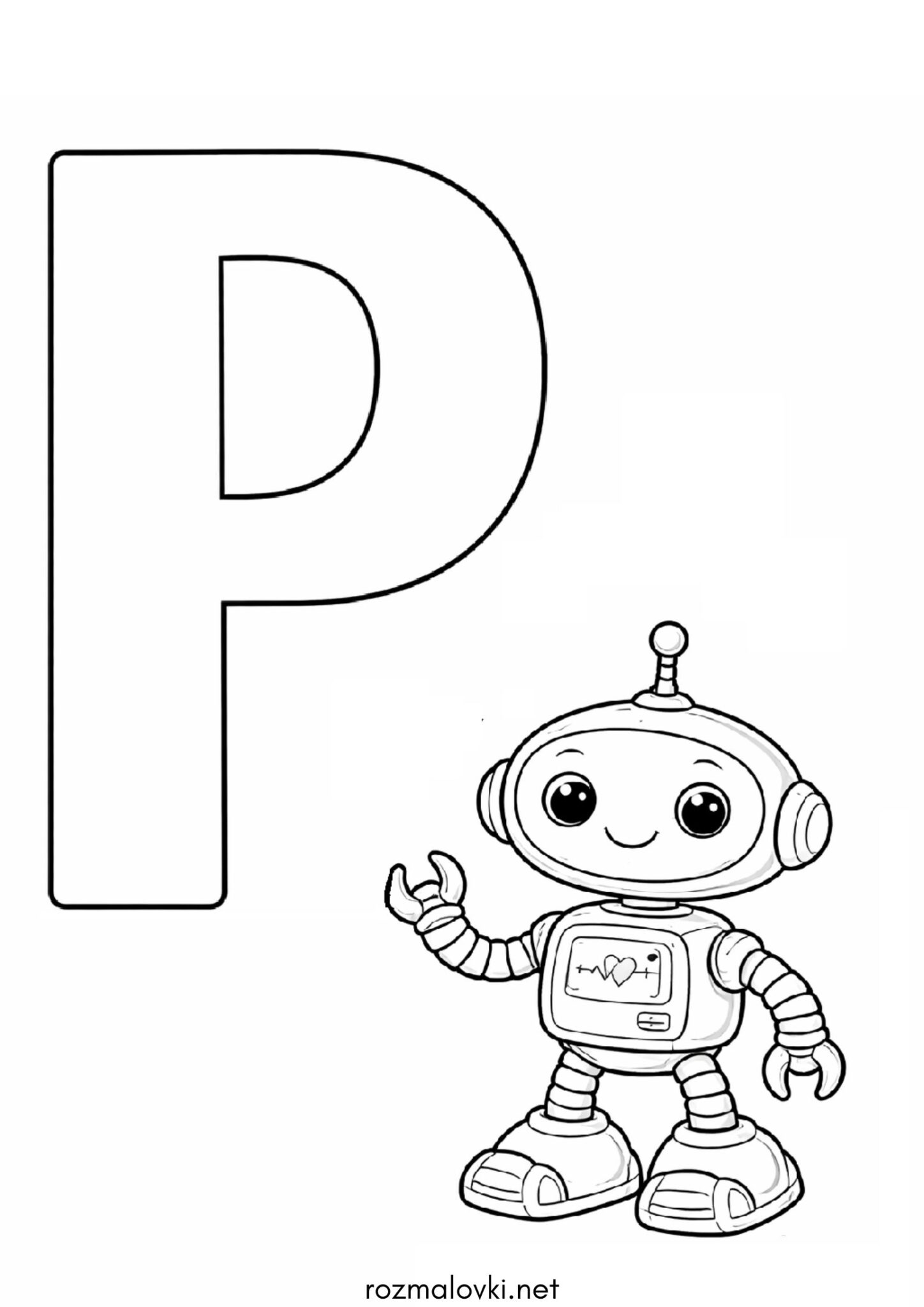Розмальовка Літера Р (буква) – Робот