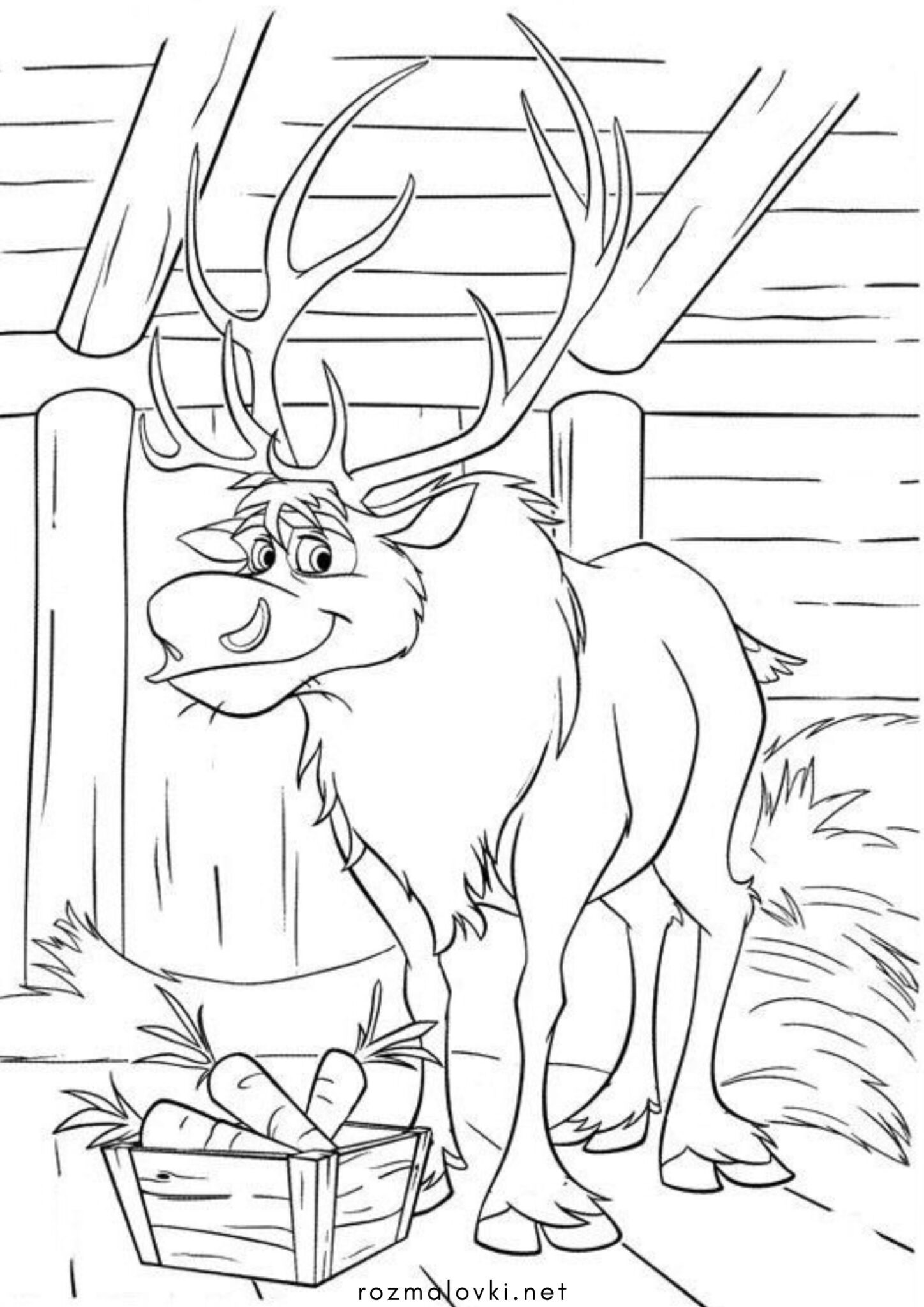 Розмальовка Олень Свен з морквою (Крижане серце)