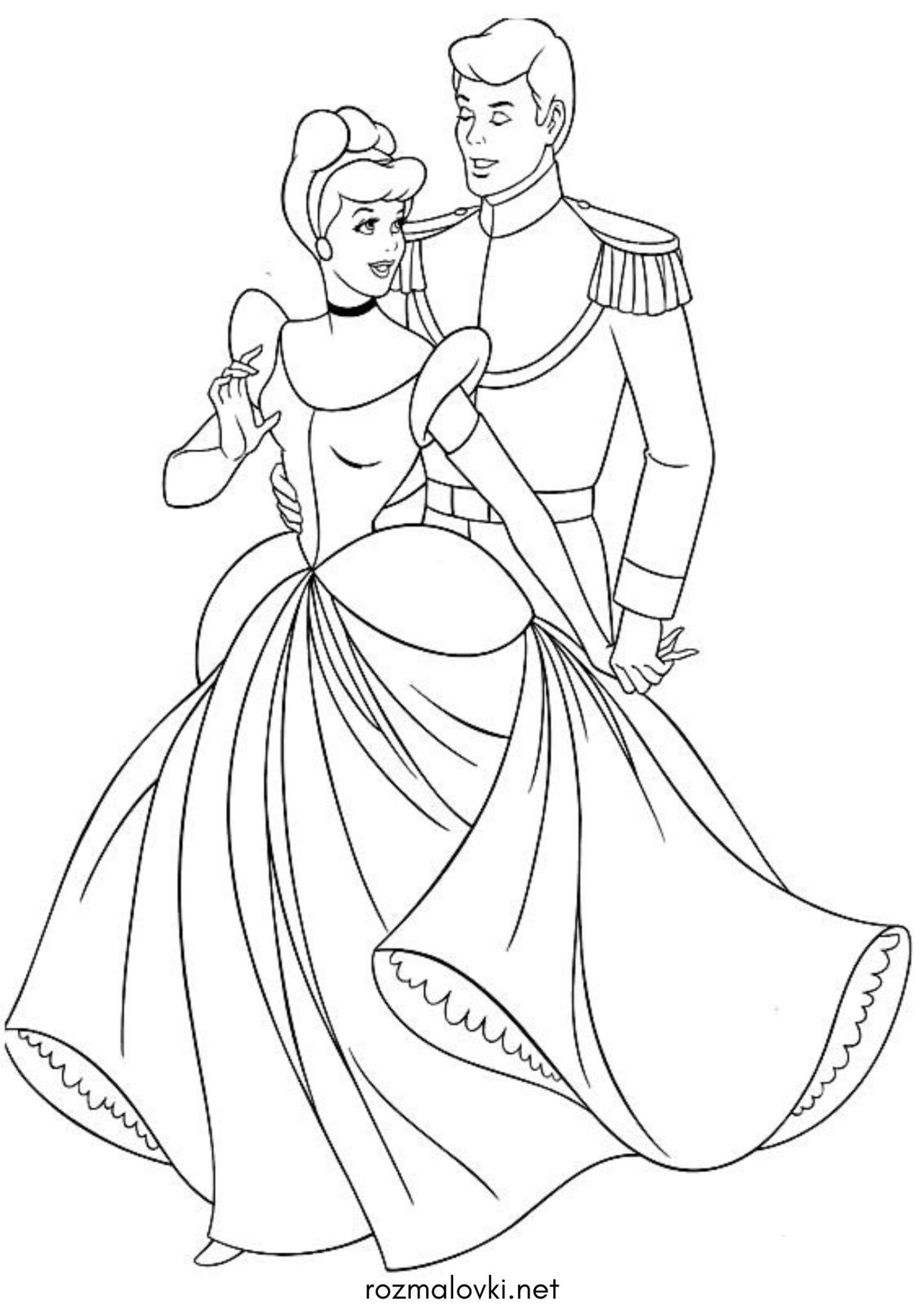 Розмальовка Попелюшка та принц