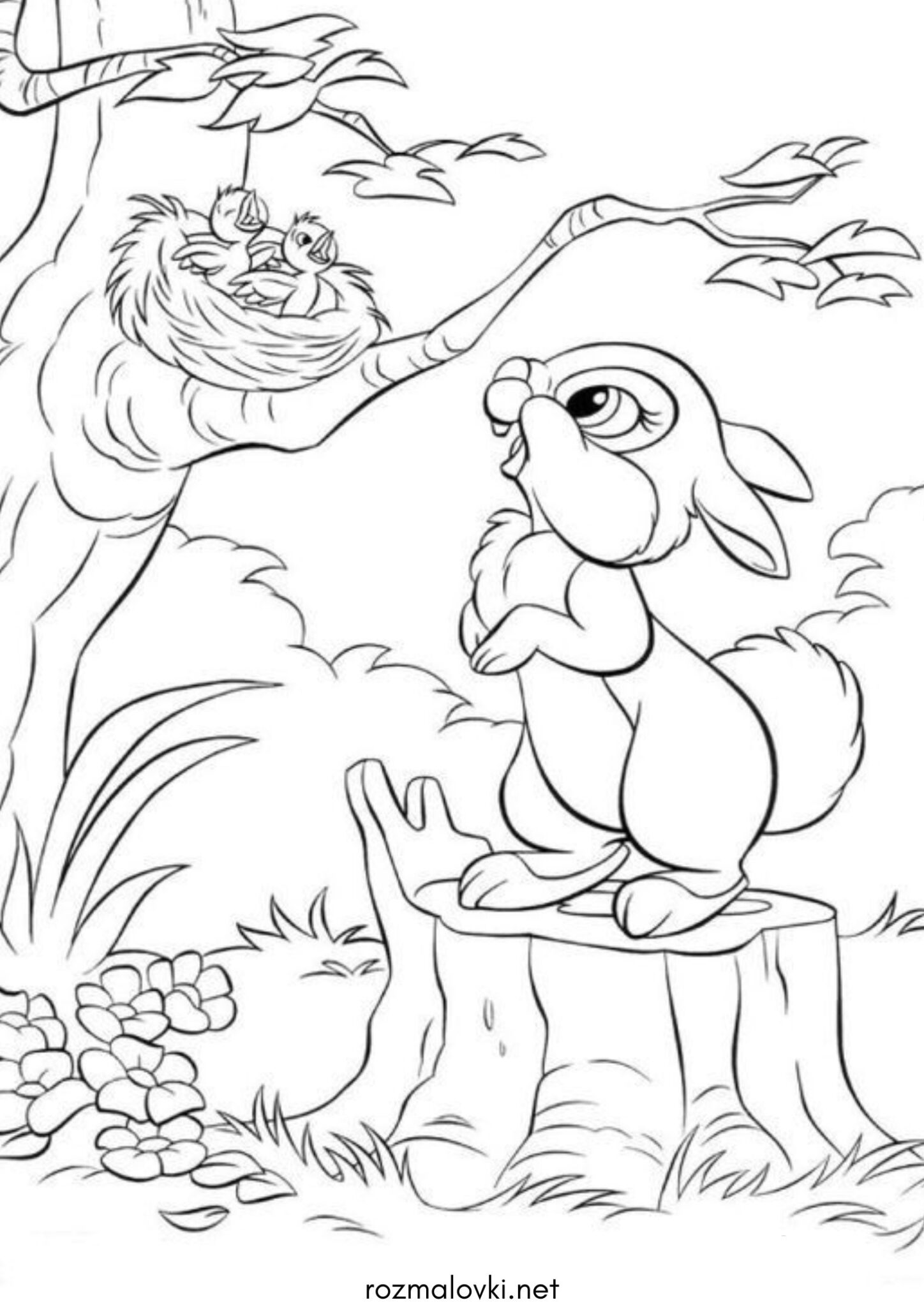 Розмальовка Зайчик Топотун та пташенята (Бембі)